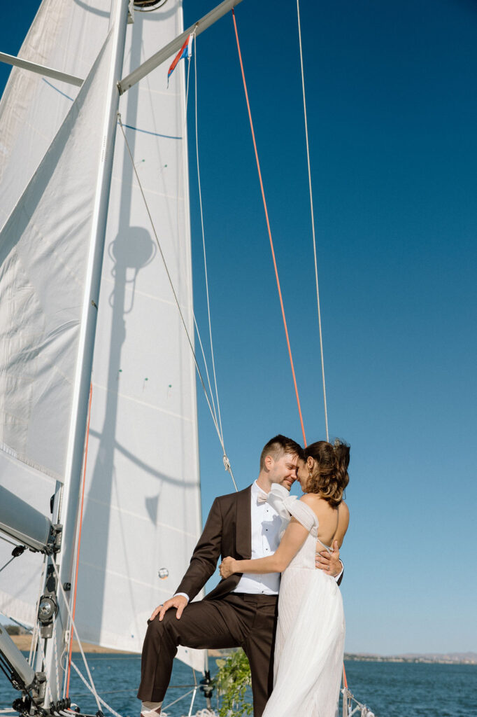 As guests cheered, the couple walked hand-in-hand from the altar to the dock—to their waiting sailboat. Sailing had become a meaningful part of their relationship during the pandemic, so it was only fitting that they would incorporate it into their wedding day. They boarded the boat for a just-married cruise, enjoying drinks while soaking in the breeze and each other’s company on the San Francisco Bay.